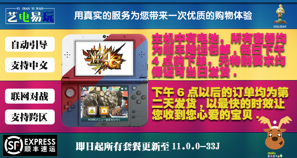 »艺电易玩 NEW 3DS NEW 3DSLL掌机 A9LH 免卡汉化 游戏机 包邮