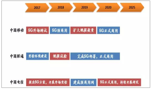 我国三大运营商的5G商用时间表