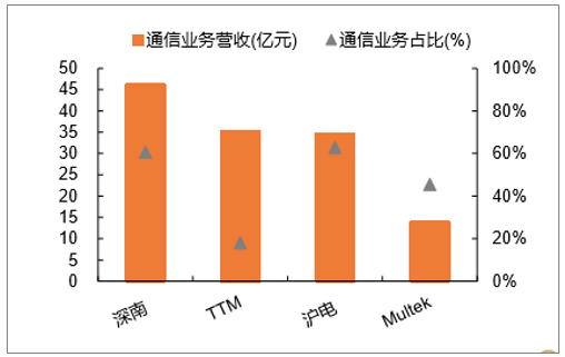 主要通信板厂商营收对比(2018年)