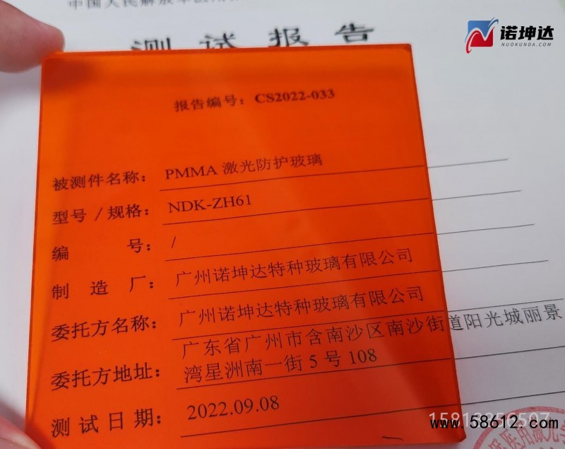 商品名称:激光防护板,材质为:PMMA