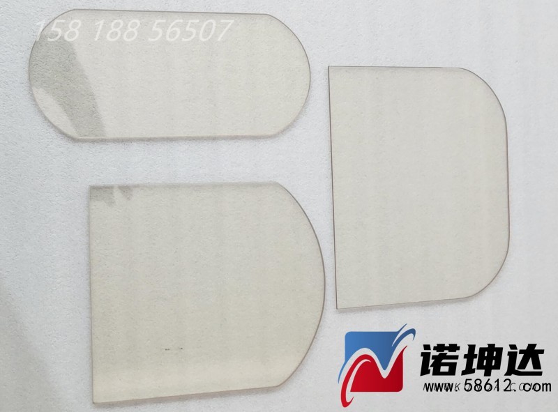 本产品为4mm厚度。可直接明火接触。本产品可定制各种形状,诸如圆弧形,拱形,方形,矩形,圆头型,椭圆形,梯形,倒R角,圆形等。