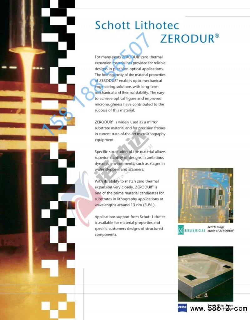 商品价格为临时价格,此商品为定制型产品。肖特零级微晶玻璃,主要用于天文望远镜,航空航天,军工等高端设备上。最厚可做到128mm,最大尺寸可做到550*550mm产品资料为英文版。如需中文,请联系销售罗经理 15818856507